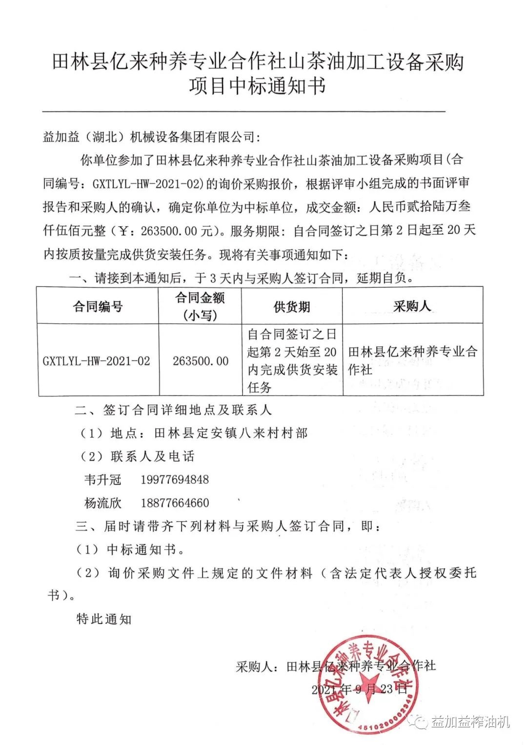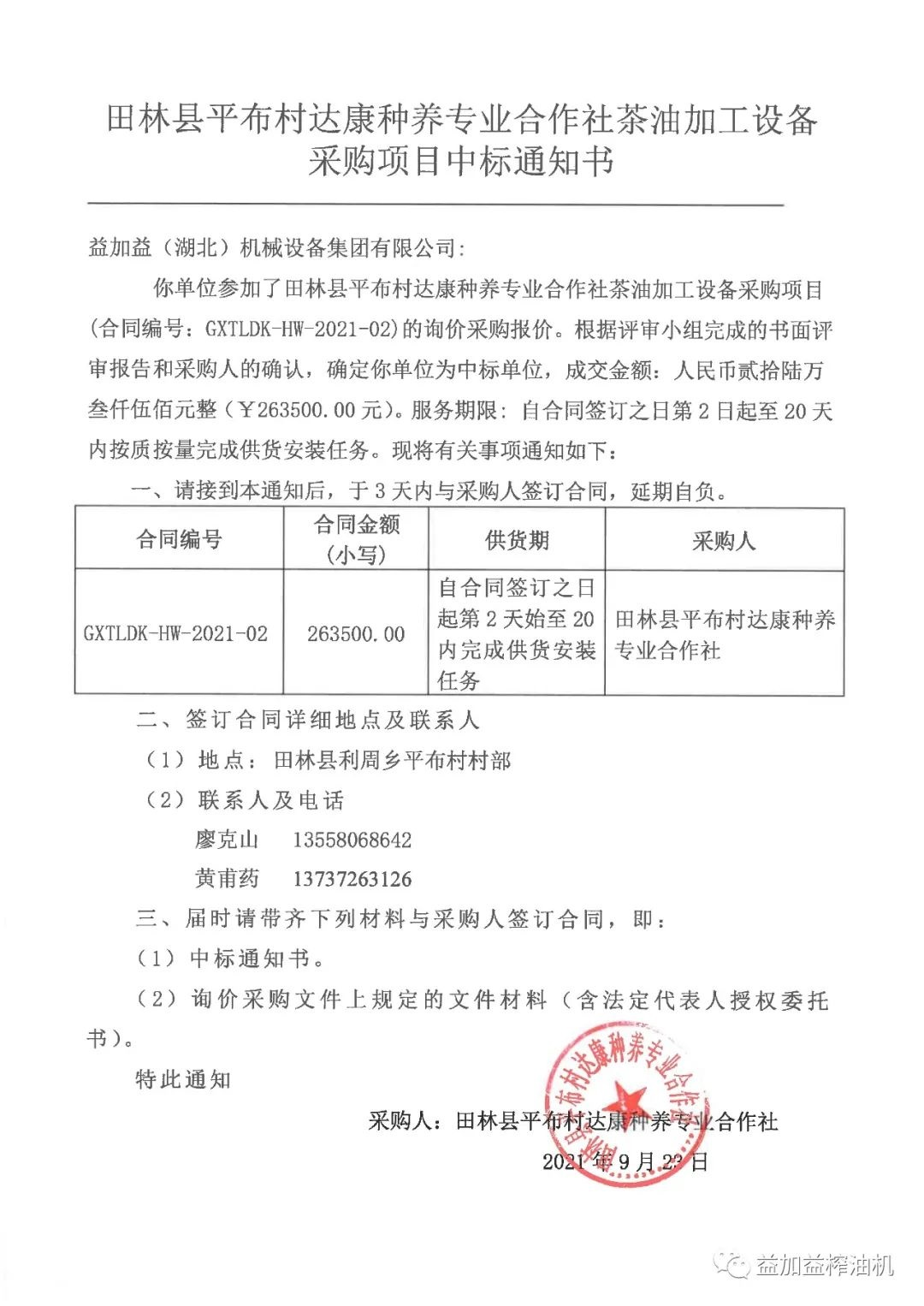 益加益集團憑借過硬的產品質量,扎實高效的工作作風,卓越的運作團隊和良好的企業信譽,在眾多競爭對手中脫穎而出,連續中標《中華人民共和國世界銀行貸款廣西貧困片區農村扶貧試點示范項目》中全部11家專業合作社山茶油加工設備的招標購置。