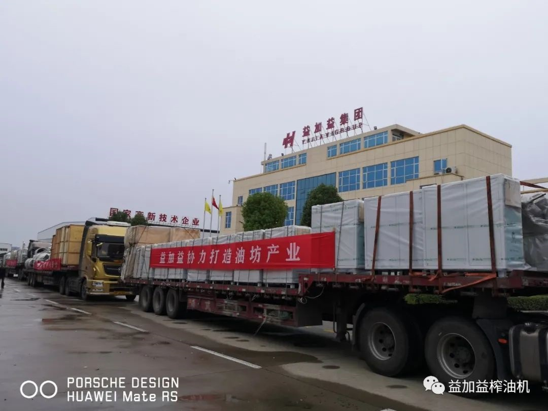 國慶節后開工第一天,訂單忙、生產忙、發貨忙......益加益產業園區內一派繁忙景象。在發貨現場,運輸物流車輛忙碌不停,一輛接一輛緩緩駛出,一臺臺“益加益制造”的高品質榨油機,發往廣西自治區百色市田林縣各個山茶油專業合作社。